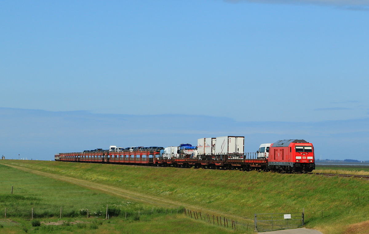 Gut erkennen konnte man das auch beim nächstfolgenden "blauen" Autozug mit 251 002, der in Richtung Sylt unterwegs war.
