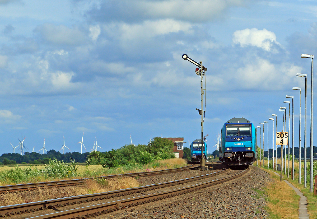 Rechts hat 245 209 Ausfahrt in Richtung Klanxbüll (und dann Sylt),
